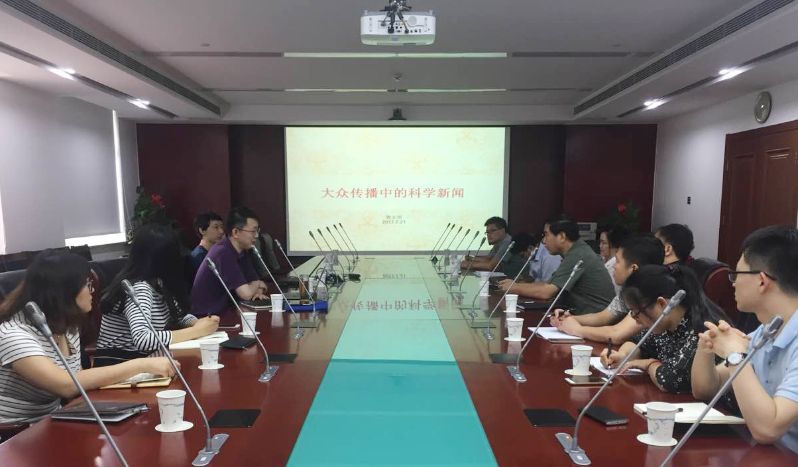 为提升科学传播业务水平,拓宽科学传播工作思路,增强科学传播服务科学基金中心工作的能力和效果,科学传播中心(科学基金杂志社)于2017年7月21日下午在行政楼216会议室开展了“科学传播系列讲座”第二期讲座,邀请《知识分子》科学新闻实验室黄永明先生做了“大众传播中的科学新闻”为主题的报告。黄永明先生是科学作家,电影科学顾问。曾任中文核心期刊《科技导报》编辑,《南方周末》资深科学记者。译著有《印度理工学院的精英们》。