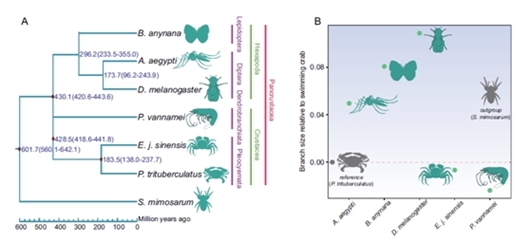 虾蟹系统演化关系和相对进化速率图 唐伯平供图