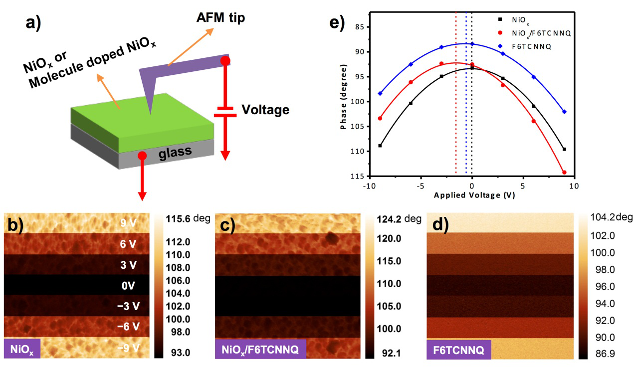 图2. 首次采用EFM在实验上证实NiO向F6TCNNQ分子的电子转移现象。