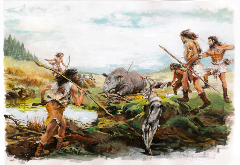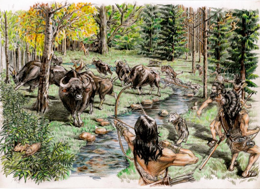 青藏高原东北部约5200年前人类围猎印度野牛场景复原图