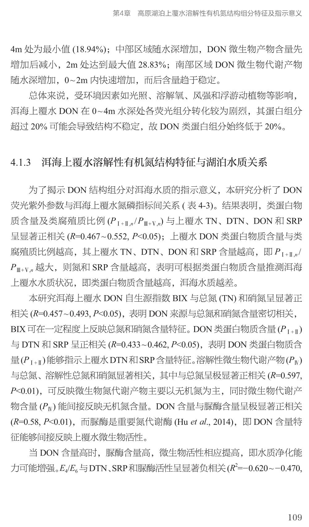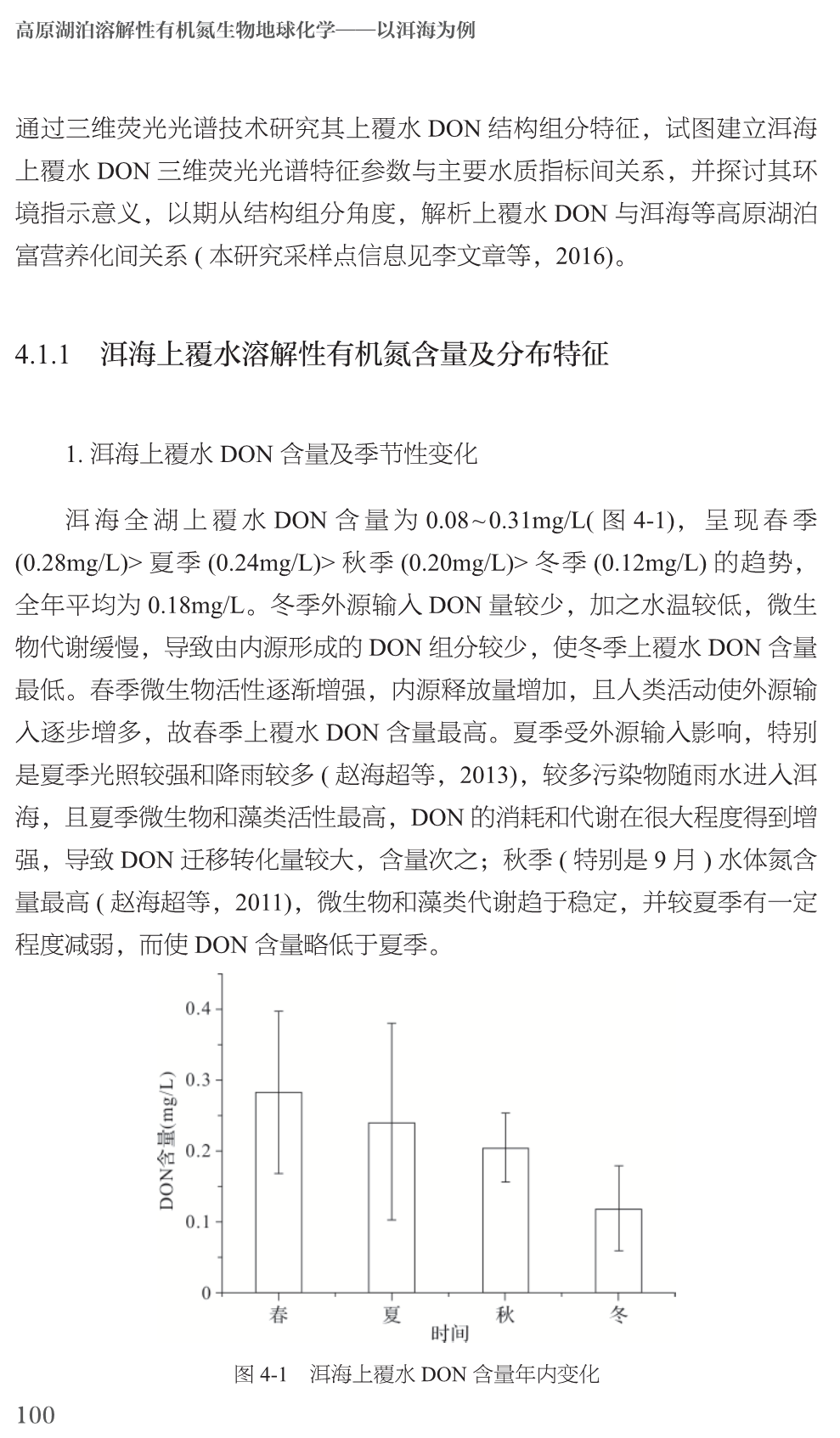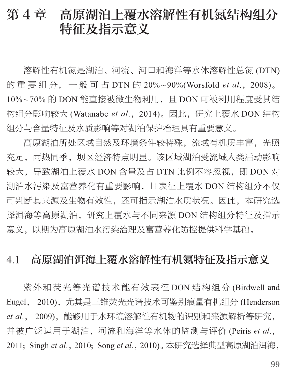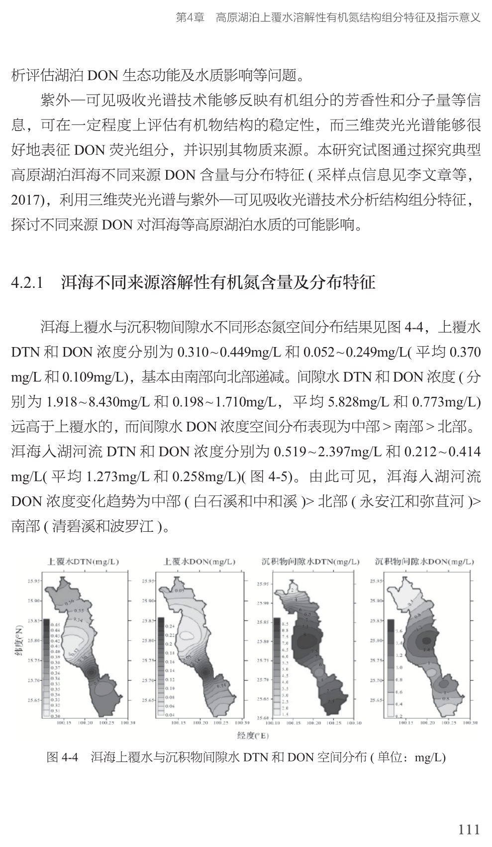 高原湖泊溶解性有机氮生物地球化学——以洱海为例:第4章 高原湖泊上覆水溶解性有机氮结构组分特征及指示意义