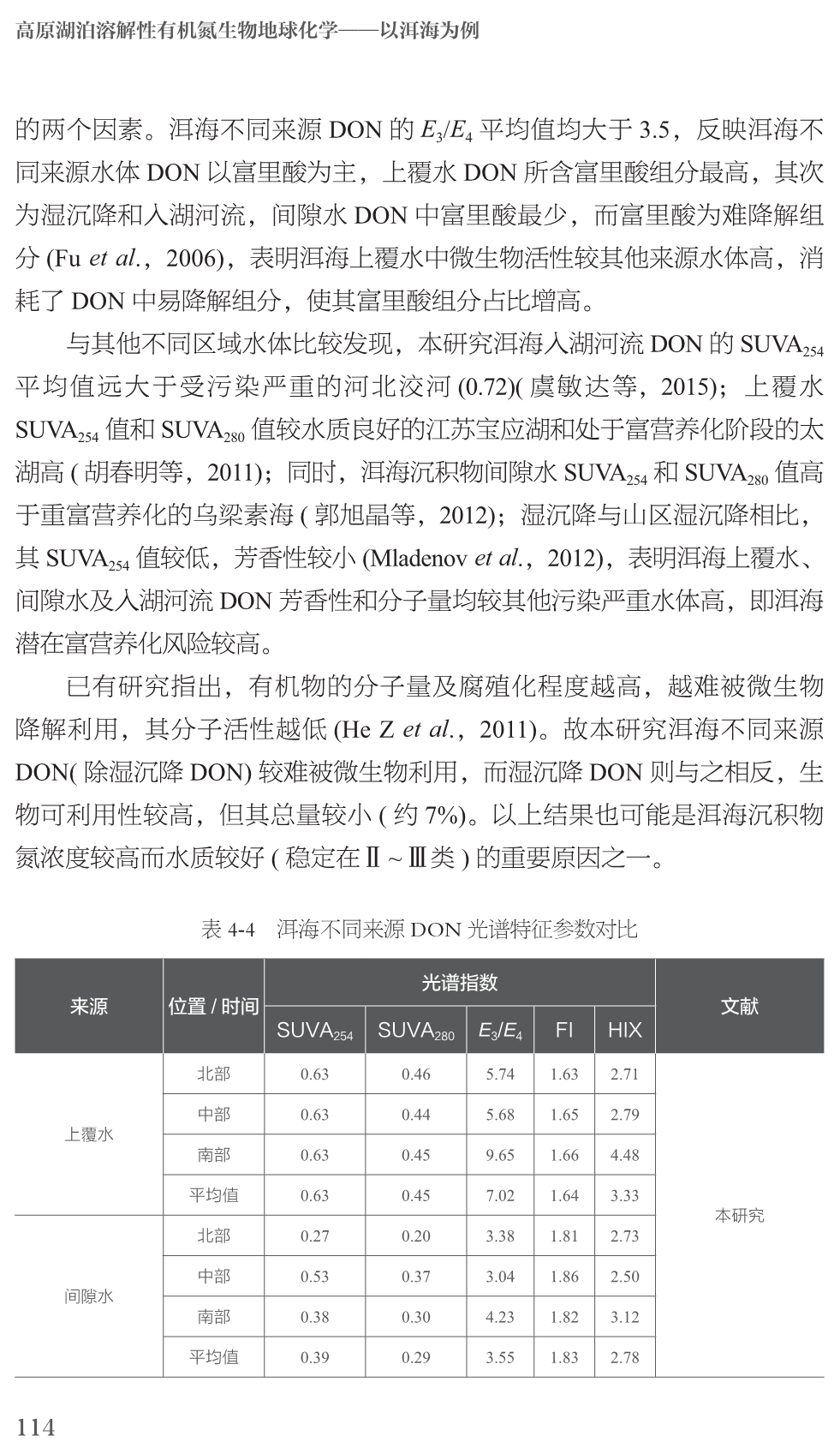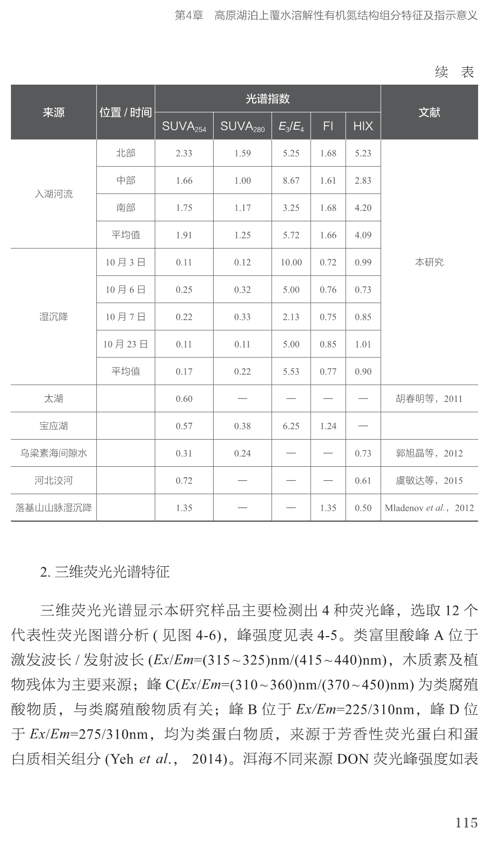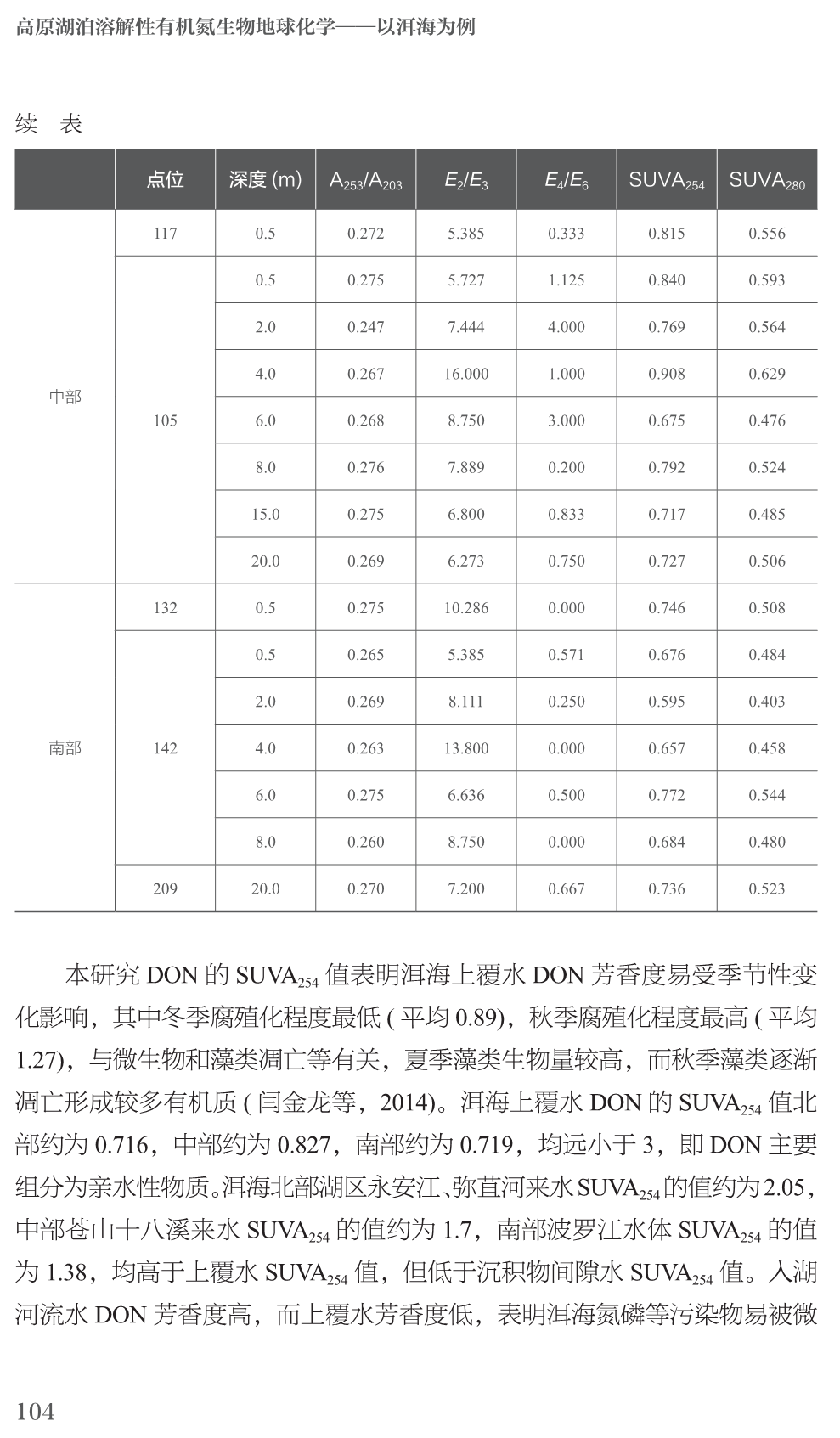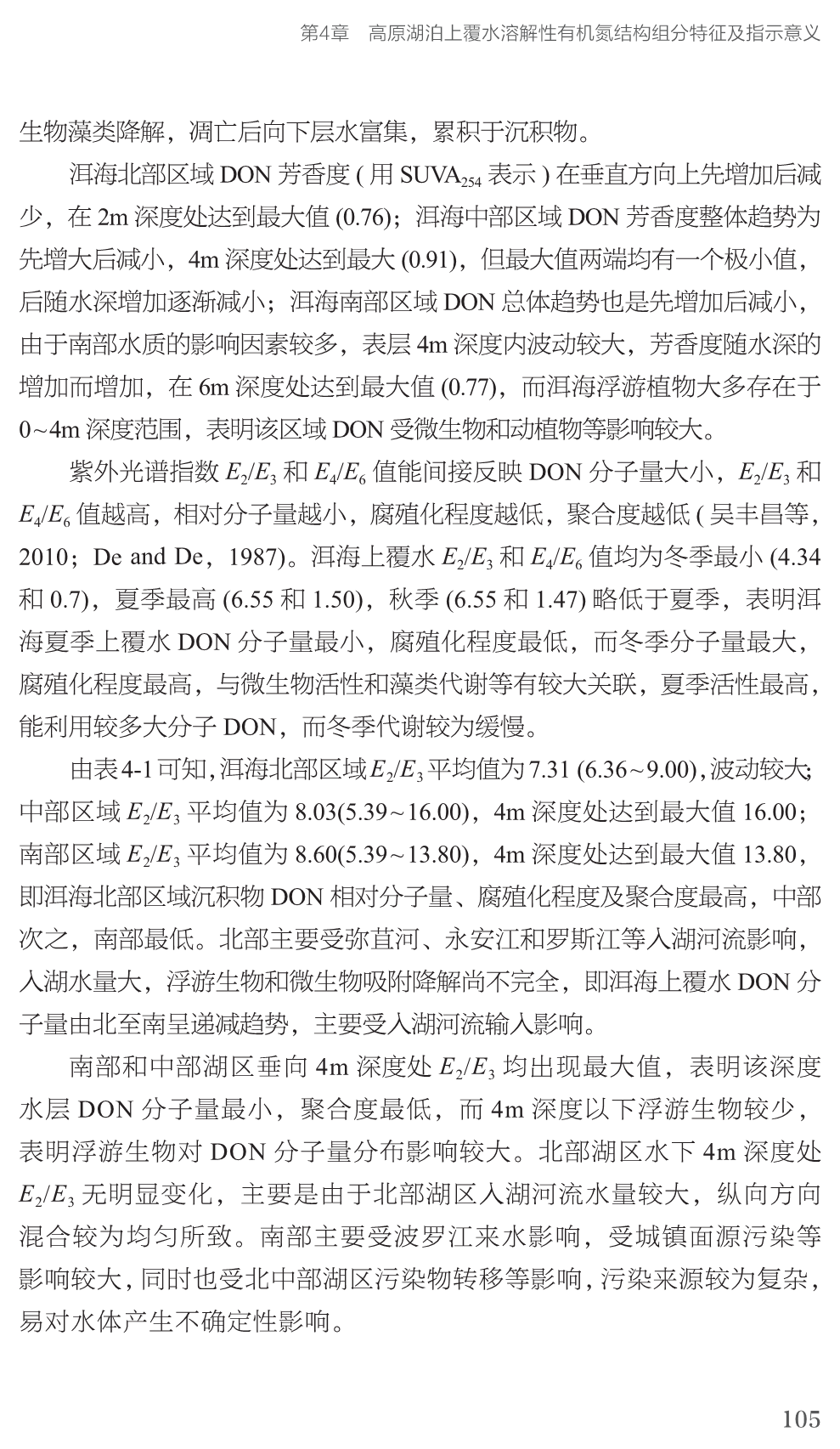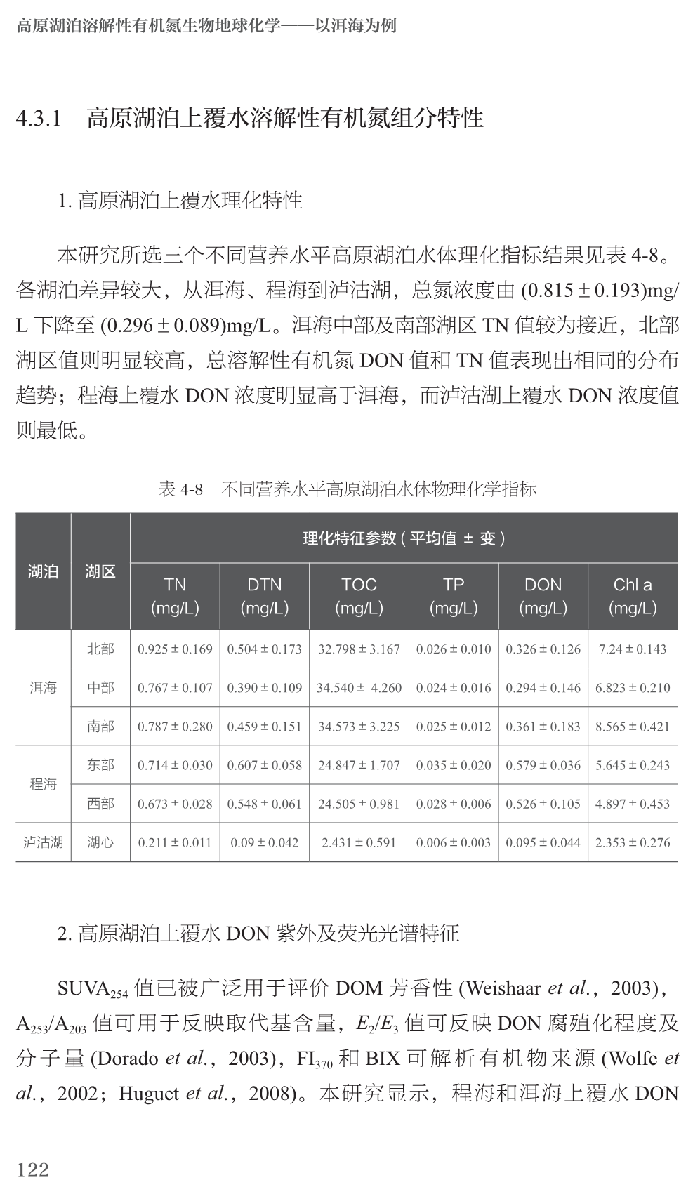 高原湖泊溶解性有机氮生物地球化学——以洱海为例:第4章 高原湖泊上覆水溶解性有机氮结构组分特征及指示意义