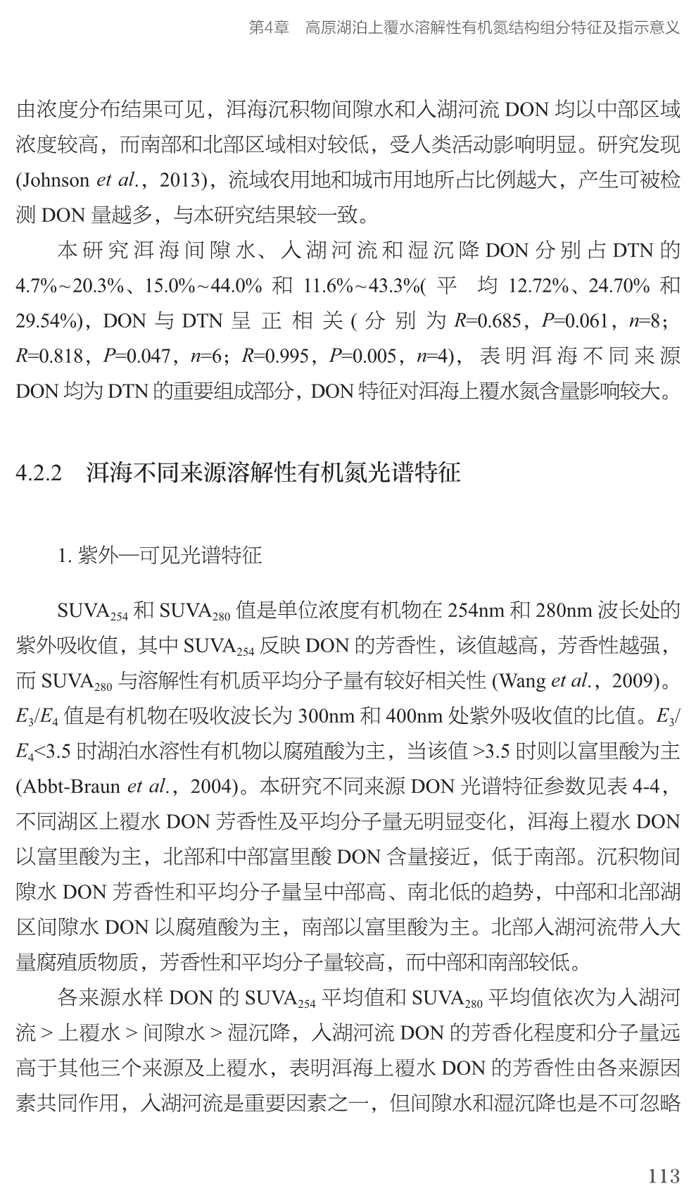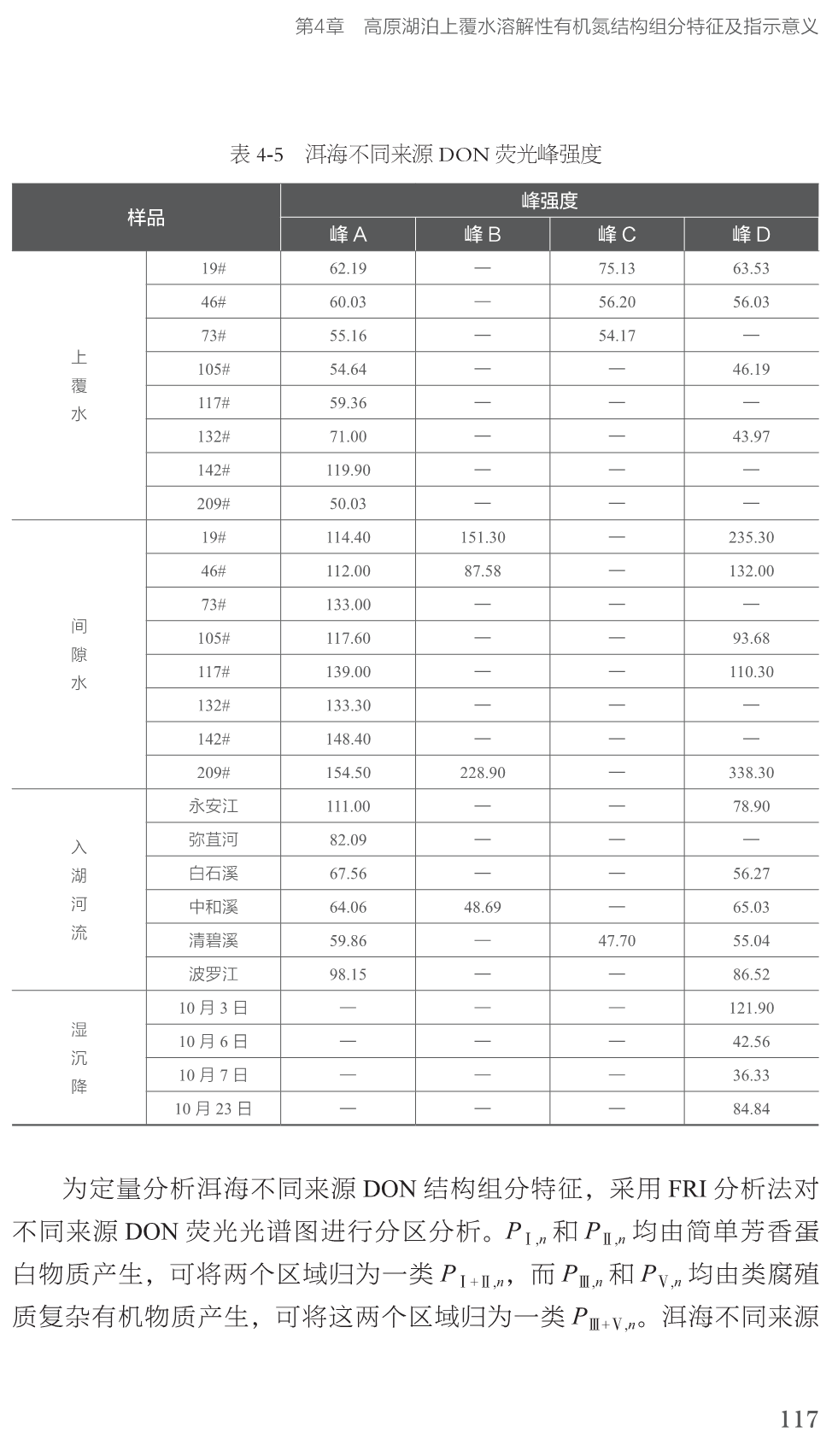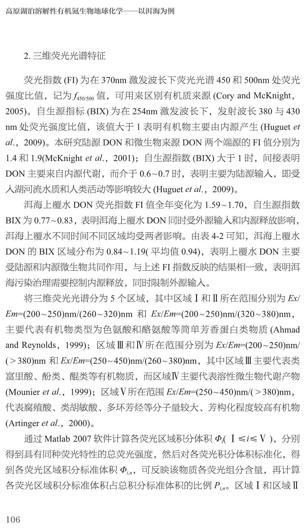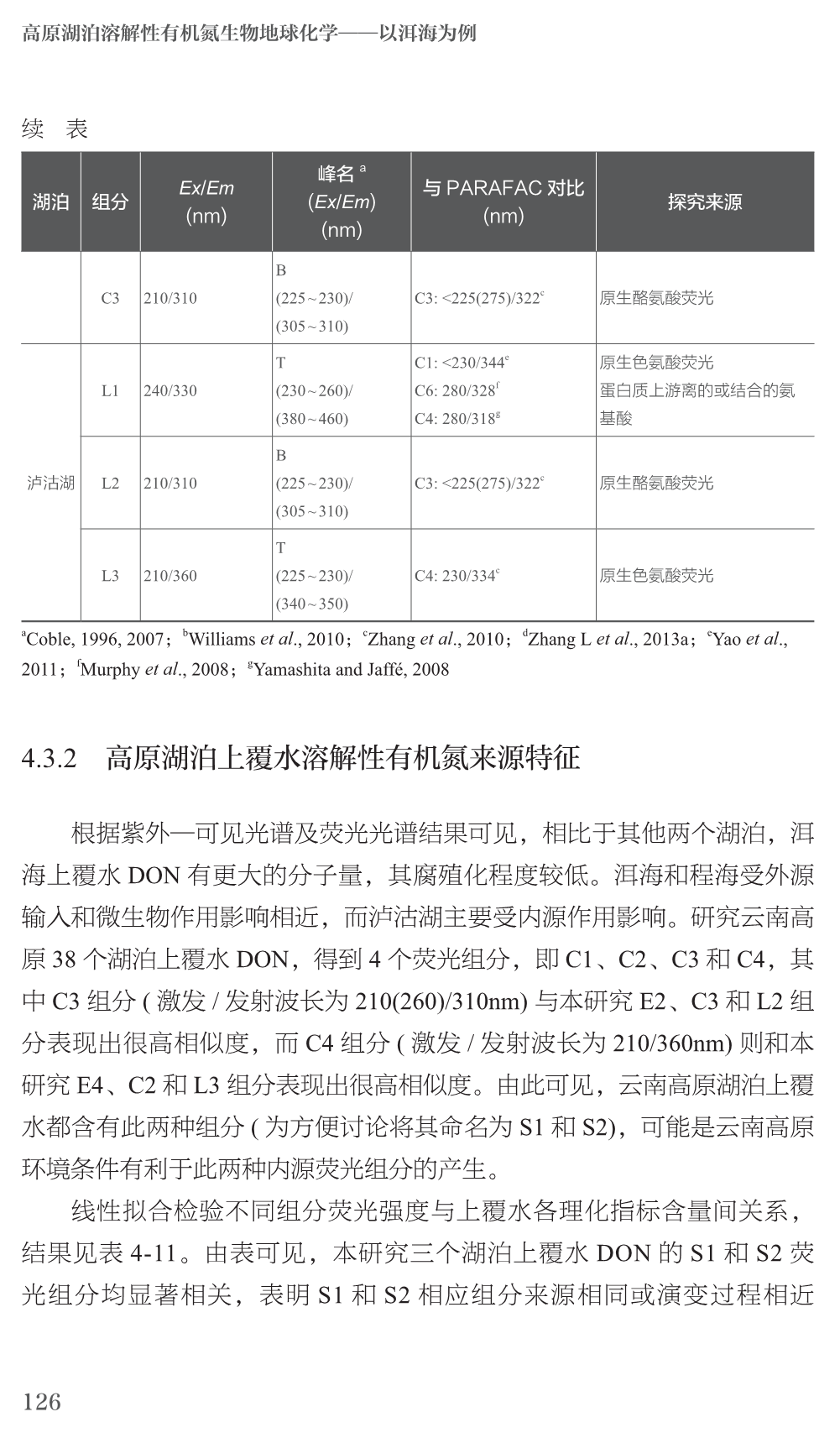 高原湖泊溶解性有机氮生物地球化学——以洱海为例:第4章 高原湖泊上覆水溶解性有机氮结构组分特征及指示意义