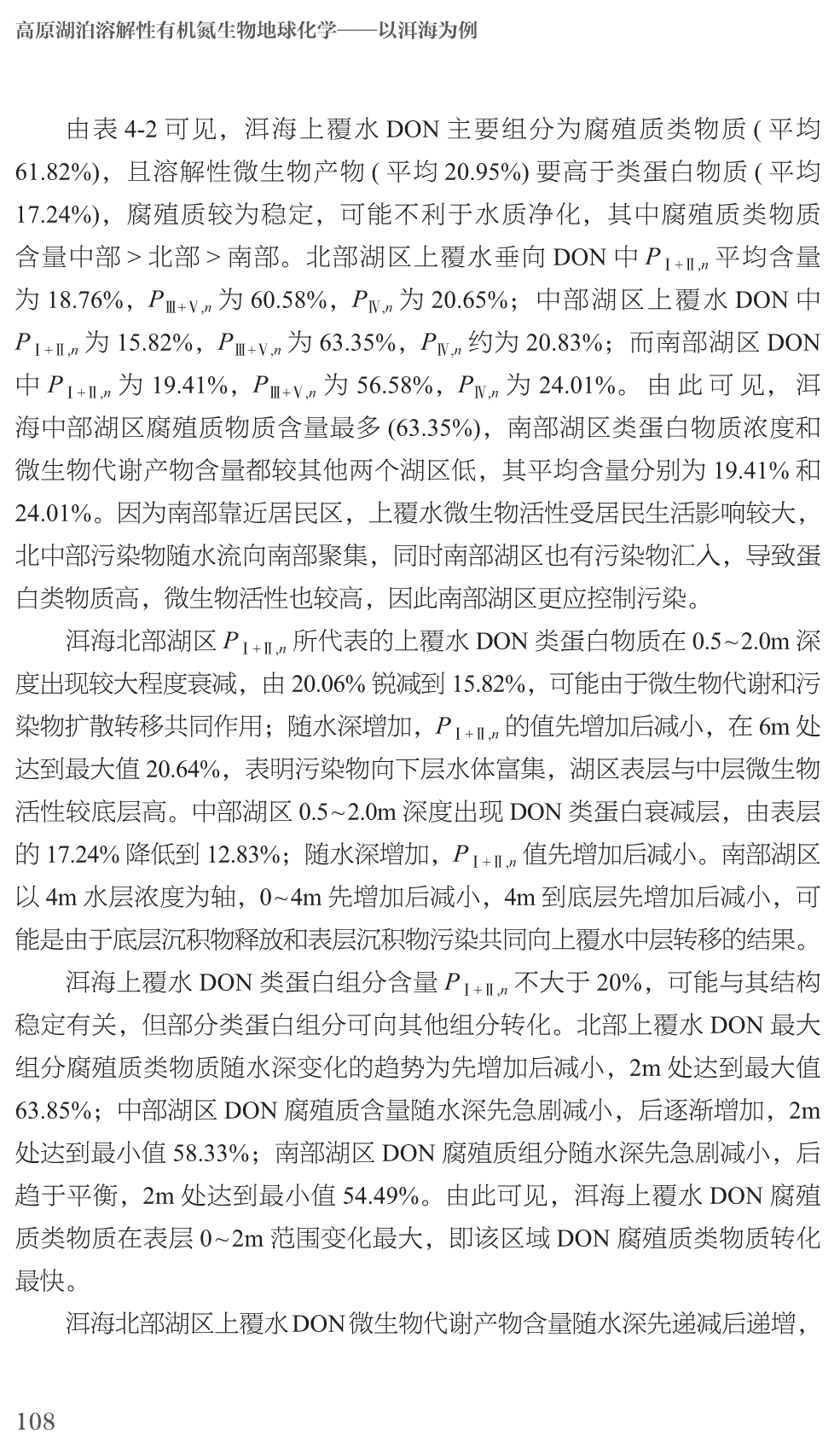 4.1 高原湖泊洱海上覆水溶解性有机氮特征及指示意义
