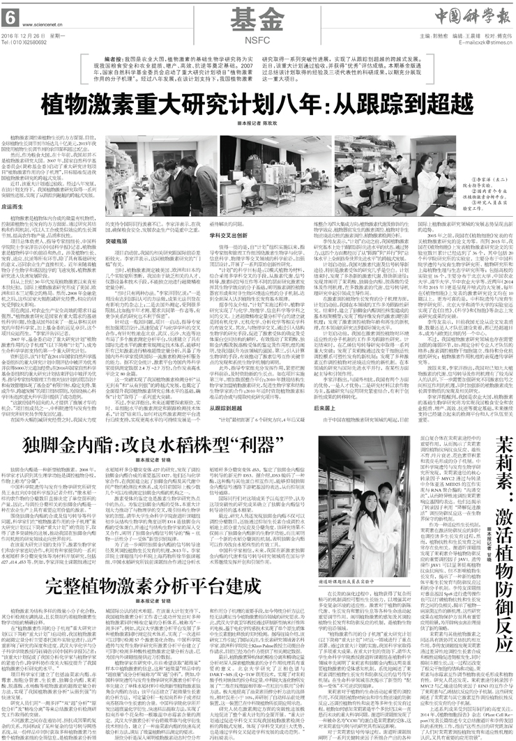 【中国科学报】“植物激素作用的分子机理”重大研究计划专题报道