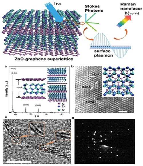 阮双琛教授团队采用空间限域生长法合成了一种新型石墨烯基超晶格材料,这种石墨烯基超晶格可以在从可见光到近红外光波段较宽的波长范围激发出表面等离子体,光激发该超晶格材料可以得到波长可调的拉曼纳米激光。该拉曼纳米激光具有无阈值、可室温操作、激光波长可调、激光波长覆盖范围广(波段从可见光到近红外光)等特点,有望在纳米光技术如生物医学成像等方面取得应用上的新突破。