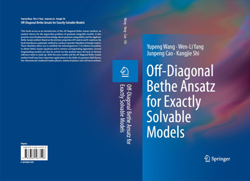他们的系列工作发表后立刻受到广泛关注,认为是“突破性”工作,解决了“长期遗留”难题。经多位国际同行建议,由王玉鹏研究员、杨文力教授、曹俊鹏研究员和石康杰教授合著的《Off-Diagonal Bethe Ansatz for Exactly Solvable Models》一书于2015年由Springer Verlag出版。该书系统地介绍了非对角贝特假定方法以及相关进展,知识框架完整,不但包含必需的基础知识,还包含一些专为本书而做的内容。最近,美国迈阿密大学的R.I. Nepomechie教授,美国俄克拉何马州立大学的J.H.H.H. Perk教授,澳大利亚墨尔本大学的P.A. Pearce教授及澳大利亚国立大学的M.T. Batchelor教授等分别发表书评,认为“作者提出的方法和非齐次T-Q关系是重大突破,解决了长期遗留难题,书中介绍的内容会有持久影响”。