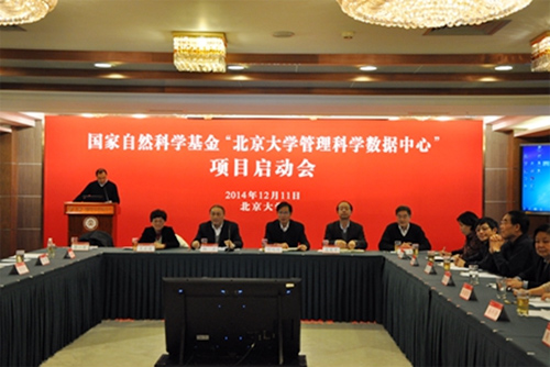 12月11日下午,国家自然科学基金“北京大学管理科学数据中心”项目启动会在北京大学英杰交流中心召开。国家自然科学基金委员会主任杨卫、副主任何鸣鸿,计划局局长孟宪平,管理科学部主任吴启迪、常务副主任李一军、副主任高自友,新闻中心主任张香平等参加了会议。北京大学校长王恩哥、常务副校长刘伟、副校长高松以及发展规划部、科研部、社科部、图书馆等部门的领导和相关领域的学者参加了会议。