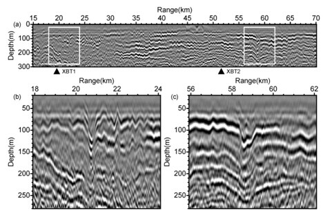 目前,“地震海洋学”可对海洋中诸如海洋锋面、海流、边界层、温跃层、漩涡、内波等物理海洋现象进行观测,突显其刻画水体细结构的能力,具有高效率、高水平分辨率(~10m)、全深度的观测优势。