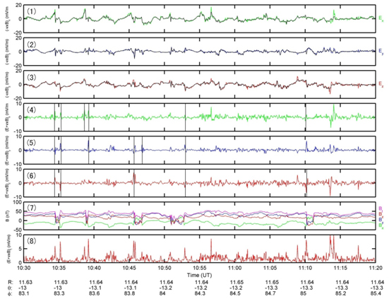 在涡旋结构的边界上,卫星观测到了磁场压缩的特点,根据法拉第定律,磁场变化应该引起垂直于磁场的环形感应电场,而卫星所观测到的感应电场恰好在这个磁场压缩区域存在5~8mV/m的峰值。经过分析估算,这种磁场压缩所引起的感应电场也大约为几个mV/m,与观测到的感应电场吻合得非常好,这说明所观测到的感应电场确实来自于涡旋边界上的磁场压缩效应,从而利用卫星在8万公里外的观测数据对法拉第定律进行了实验验证。这是首次在Kelvin-Helmholtz涡旋边界上观测到由于磁场压缩引起的感应电场。这种感应电场可能是诱发磁场重联过程以及引起太阳风向磁层传输过程的一个重要因素。
