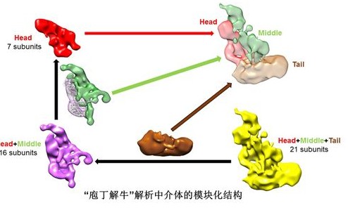 在本项研究中,蔡刚研究组采取“庖丁解牛”的研究策略,将完整中介体肢解成各个模块和模块的组合,通过细致比较中介体及其各个功能模块组合的精细三维结构,首次清晰划分了各个模块,重新定义了中介体的模块化的组织架构,颠覆了影响转录研究领域长达十余年的错误认识。该成果对揭示基因表达及其调控的分子机制,理解细胞增殖、发育及分化的机理具有重大意义。