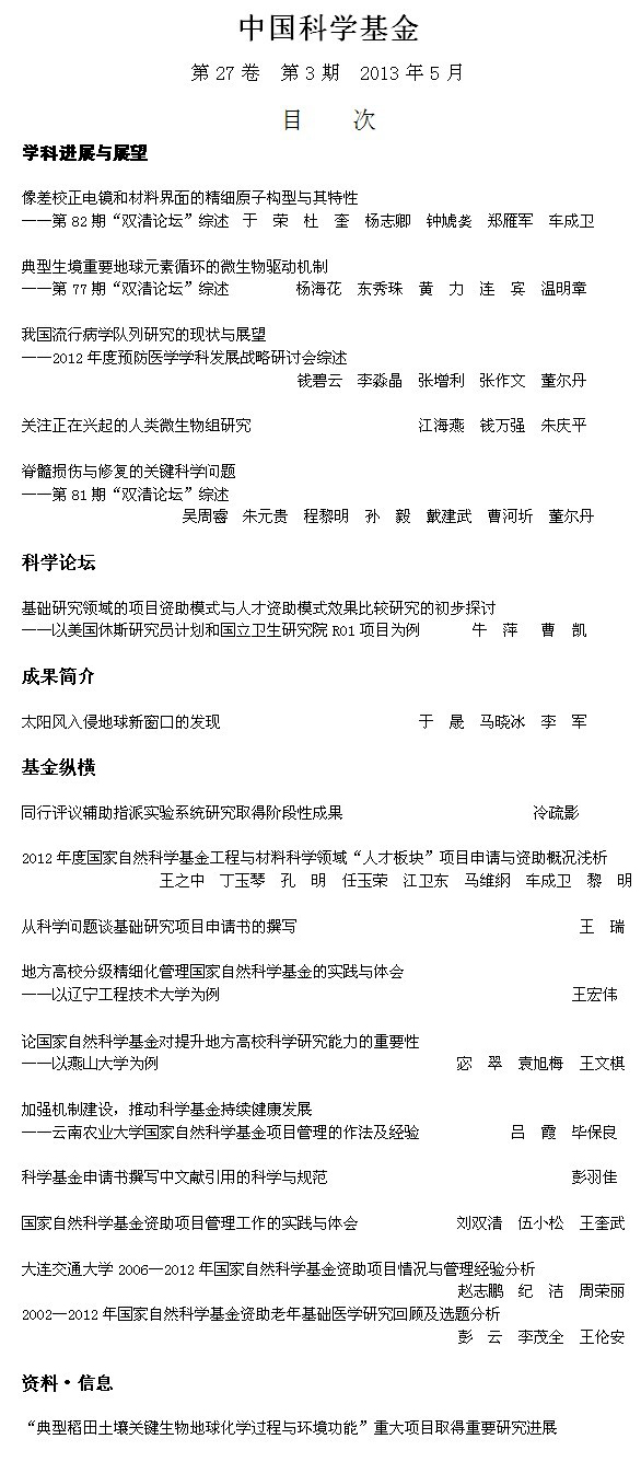 《中国科学基金》2013年第3期目次