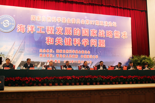 国家自然科学基金委员会第87期双清论坛于日前在青岛召开。本次论坛主题为“海洋工程发展的国家战略需求和关键科学问题”,由基金委数学物理科学部、地球科学部、工程与材料科学部和政策局共同主办,青岛市人民政府和中国海洋大学承办。中国船舶科学研究中心吴有生院士、中国科学院力学研究所李家春院士和中国海洋石油总公司周守为院士共同担任本次论坛的大会主席。来自全国23个高等院校、科研院所和工程部门的46名专家学者出席会议。开幕式由数学物理科学部副主任孟庆国研究员主持,基金委副主任沈文庆院士出席会议并做重要讲话,青岛市王广正副市长和中国科学院力学研究所李家春院士分别在开幕式上致辞,数学物理科学部常务副主任汲培文研究员介绍了论坛的准备情况和要求。