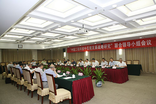 中国工程科技发展战略研究工作联合领导小组(以下简称联合领导小组)第一次会议于2012年8月17日召开。我委陈宜瑜主任,孙家广副主任,中国工程院周济院长,潘云鹤常务副院长出席会议。会议听取了联合领导小组副组长孙家广关于《中国工程科技发展战略研究联合工作方案》的说明,副组长潘云鹤关于战略研究项目选题原则与程序的说明,联合工作组关于《2012年度战略研究工作计划》的汇报,审议并批准了上述两个文件。