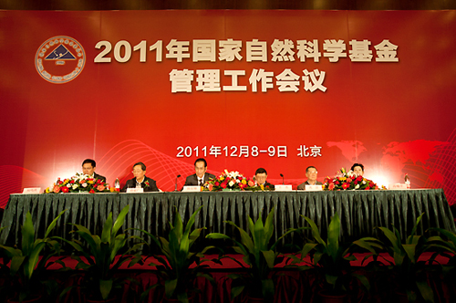 2011年12月8-9日,在北京召开了2011年国家自然科学基金管理工作会议。这次会议的主要内容是:在总结科学基金管理工作经验的基础上,表彰“十一五”期间在国家自然科学基金管理工作中取得显著成绩的依托单位、地区联络网及管理工作者;部署2012年度国家自然科学基金申请与结题申报工作。国家自然科学基金委员会陈宜瑜主任、王杰副主任、孙家广副主任、沈岩副主任、何鸣鸿副主任及高瑞平副秘书长出席了会议;与会代表共计300余人,分别来自受表彰的先进单位、先进工作者所在依托单位、联络网组长单位、各地方科技厅(局)或地方基金会、联合基金相关部门以及我委相关部门。
