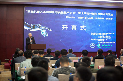 2018年4月26日,由国家自然科学基金委员会(以下简称基金委)主办,中国北方车辆研究所承办、华中科技大学协办的“共融机器人基础理论与关键技术研究”重大研究计划2017年度学术交流会在北京召开。重大研究计划顾问专家组成员、指导专家组成员、秘书组成员、特邀专家、2016年度重大研究计划获批项目负责人及成员共100余名专家参加会议。基金委工程与材料科学部常务副主任黎明研究员出席会议并在讲话指出,我国机器人产业发展正逢“天时地利人和”,希望重大研究计划的成果能为我国机器人技术和产业取得源头创新提供科学支撑。