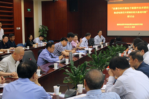 2018年5月11日,由国家自然科学基金委员会(以下简称“基金委”)信息科学部组织的“后摩尔时代微电子新器件技术研究—集成电路芯片研制的相关基础问题”研讨会在京召开。研讨会由基金委信息科学部副巡视员何杰同志主持,基金委党组成员、副主任张希、高瑞平、王承文,信息科学部主任柴天佑、常务副主任秦玉文及学部有关工作人员参加了研讨会。邀请了西安电子科技大学郝跃院士作专题报告,来自全国18所高校和科研单位的24位专家学者就集成电路芯片研制的相关基础问题展开深入讨论。