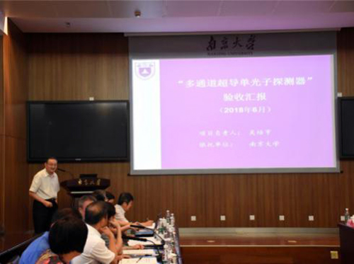 2018年6月14-15日,国家自然科学基金委员会(以下简称基金委)数理科学部国家重大科研仪器研制项目(部门推荐)“多通道超导单光子探测器”(南京大学吴培亨教授,批准号:11227904)和“多波段脉冲单自旋磁共振谱仪研制”(中国科学技术大学杜江峰教授,批准号:11227901)结题验收会召开。基金委副主任谢心澄院士出席会议并讲话,数理科学部董国轩副主任主持开幕式。项目依托部门、项目依托单位、数理科学部、计划局、财务局相关工作人员参加会议。