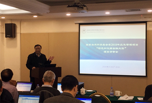 2018年11月27-28日,国家自然科学基金委员会(以下简称自然科学基金委)应急管理项目“防范和化解金融风险”评审会在北京召开。自然科学基金委党组成员、副主任侯增谦院士出席会议并讲话,管理科学部副主任杨列勋研究员主持会议。该项目是自然科学基金委为快速响应中央的“打好防范化解金融风险攻坚战”重大战略需求专门设立的。在指南发布、项目初审和通讯评议等程序之后,共有20位项目申请人参加会议答辩。评审会专家组由10位宏观经济和金融管理领域的专家组成。