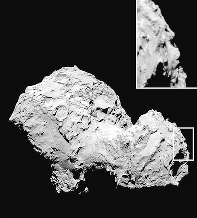 “罗塞塔”号彗星探测器于8月6日已成功“踏入”目标彗星的轨道,让人们有机会近距离探视彗星这一神秘天体的真容。而日前,德国航空航天中心于社交媒体上发布了一幅“丘留莫夫-格拉西缅科”彗星的照片,在该照片的右下角,人们竟然能够清晰地看到类似一张人脸的形象。不过,科学家指出,这仅仅是“幻想性视错觉”的产物。