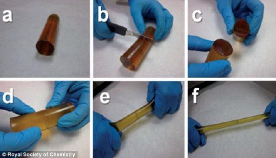 西班牙圣塞瓦斯蒂安市电气化学中心研究人员称,当这种材料被一切为二时,能够快速愈合在一起,两个小时之内97%的测试样本能够自动愈合
