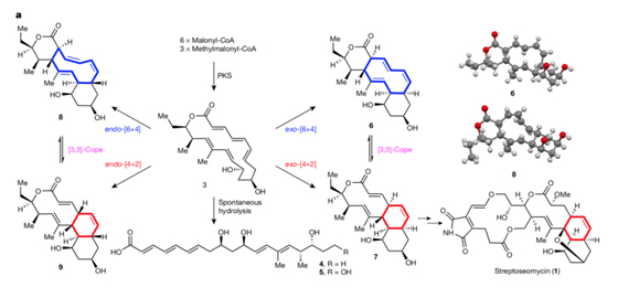 图2 Streptoseomycin生物合成中的[6+4]和[4+2]反应