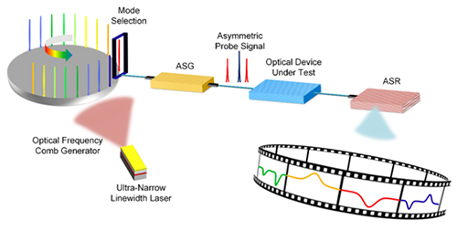 光器件是实现新一代光信息系统(光通信、光传感、光处理、量子计算等)的物理载体。光矢量分析方法作为一种能够测量光器件幅度、相位以及偏振响应的基础测量方法,可在光器件的研制、生产、检测和应用中发挥重要作用。由于不同类型光器件的测量要求各不相同,需要光矢量分析方法具备超高分辨率、超宽带和大动态范围等特性。然而,现有的光矢量分析方法很难同时实现超高分辨率、超宽带和大动态范围测量。