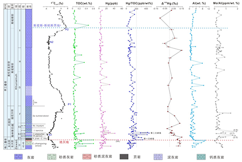图2 印度Guryul Ravin地区晚二叠世-早三叠世汞含量、汞同位素及其它环境指标组成特征