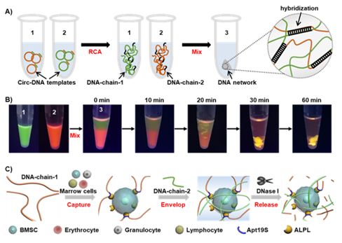 图. 双滚环扩增策略合成物理交联DNA水凝胶网络用于干细胞特异性高效可控捕获和释放