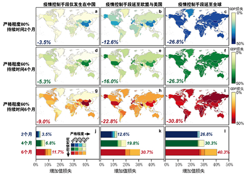 图 不同防控措施情景下疫情对全球经济的影响(增加值损失)