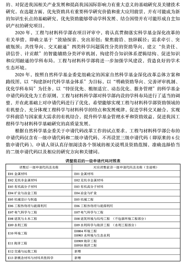 国家自然科学基金申请代码