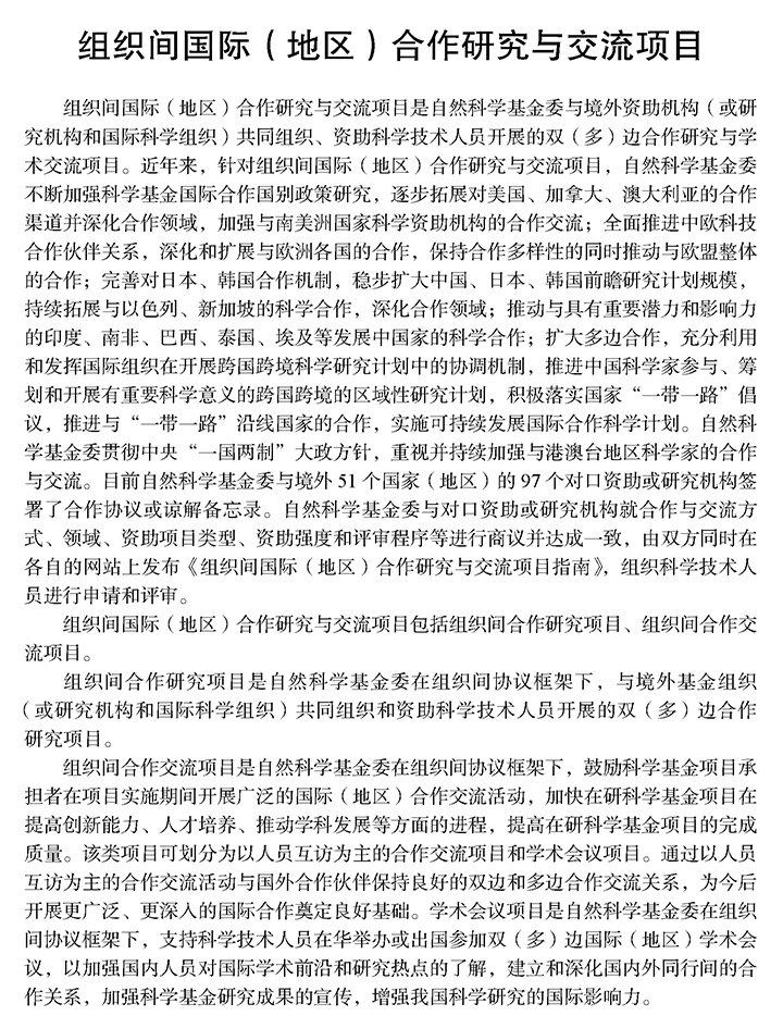 国际(地区)合作研究与交流项目
