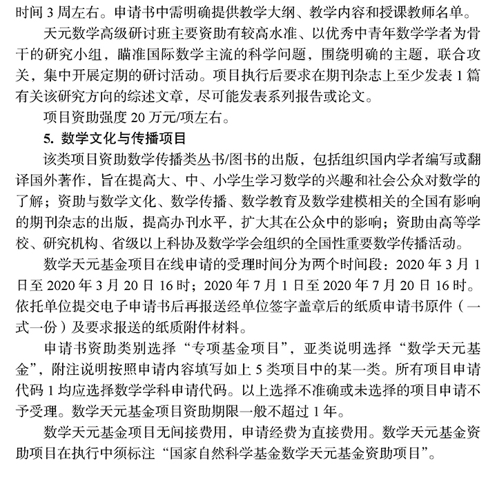 数学天元基金项目