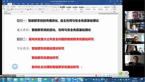 2020年3月26日信息科学部召开网络视频会议,讨论“下一代智能自主集群系统”双清论坛筹备事宜。