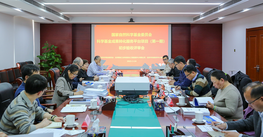 3月24日,自然科学基金委科学传播与成果转化中心(以下简称传播与转化中心)组织召开了科学基金成果转化服务平台项目(第一期)(以下简称成果转化平台)初步验收评审会。自然科学基金委党组成员、秘书长韩宇出席会议。传播与转化中心主任彭杰,信息中心主任李东,计划与政策局项目处处长郑知敏,科技部火炬中心信息处原处长李冰,项目承建单位北京中科院软件中心有限公司(以下简称中科院软件中心)党委委员、副总经理王树志等参加会议。会议由彭杰主任主持。