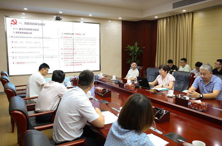 为推动学习贯彻习近平新时代中国特色社会主义思想主题教育走深走实,按照机关党委的要求和党支部学习计划安排,7月12日,自然科学基金委科学传播与成果转化中心(以下简称中心)党支部书记彭杰以“加强党的政治建设,以党建为引领,担当起新时代的职责使命”为题,为传播与转化中心全体党员干部讲党课。