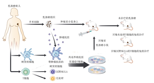 研究团队在体外对T细胞进行了修饰,沉默了NKILA的表达,再将T细胞回输至患了乳腺癌的小鼠模型体内,NF-κB通路便会维持在激活状态。他们发现,如此一来肿瘤内的T细胞明显增多,被杀伤的肿瘤细胞增多,肿瘤明显缩小。
