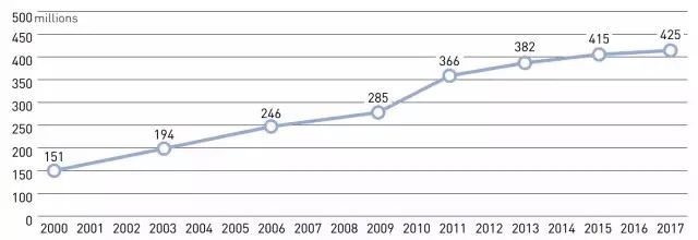 全球糖尿病患者(20-79岁)总数量随时间的变化,图片来自diabetesatlas.org