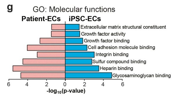 在移植人造血管的小鼠中诱发糖尿病后,研究者发现人造血管中基底膜的大量扩张,这与糖尿病患者的血管损伤造成典型的基底膜增厚十分相似。进一步的测序分析表明,人造血管与糖尿病病人具有相似的基因表达图谱,且都高表达的angiopoietin2、apelin和TNFRSF11B等糖尿病标记基因。这说明虽然由人类多功能干细胞诱导的血管结构被移植到小鼠身体上,但其仍具有人类的“记忆”,因此可以用作人类血管疾病的研究模型。
