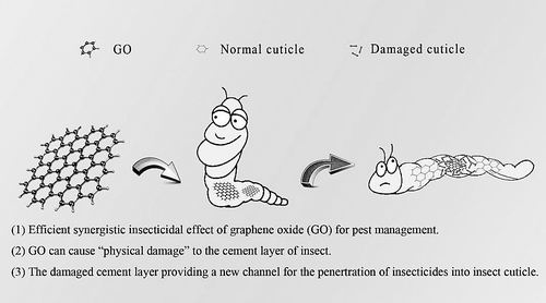 本报讯 近日,中国农业科学院植物保护研究所粮食作物害虫监测与控制创新团队创新性地将氧化石墨烯作为农药的增效剂,显著地提高了农药的生物活性。相关研究成果以封面文章形式在线发表在《环境科学:纳米》(Environmental Science: Nano)上。
