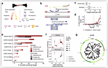 在这项研究中,研究人员使用了一种从cDNA扩增出核突变的“MutaSeq”单细胞测序方法对白血病患者进行了深度的外显子测序,并基于患者体内CD34 +细胞的表达量,系统比较了MutaSeq和全转录组单细胞RNA测序法“Smart-seq2”的性能差异。