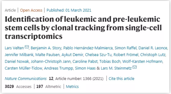 近日,西班牙基因组调控中心(CRG)和欧洲分子生物学实验室(EMBL)的研究人员在《Nature Communications》发表了一篇题为“Identification of leukemic and pre-leukemic stem cells by clonal tracking from single-cell transcriptomics”的文章,带来了一种依据单细胞多组学治疗白血病的新方法,为人们寻找到从源头上消除癌症的药物奠定了基础。
