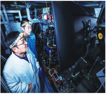 李传锋(前)、周宗权(后)在实验室。中国科学技术大学供图