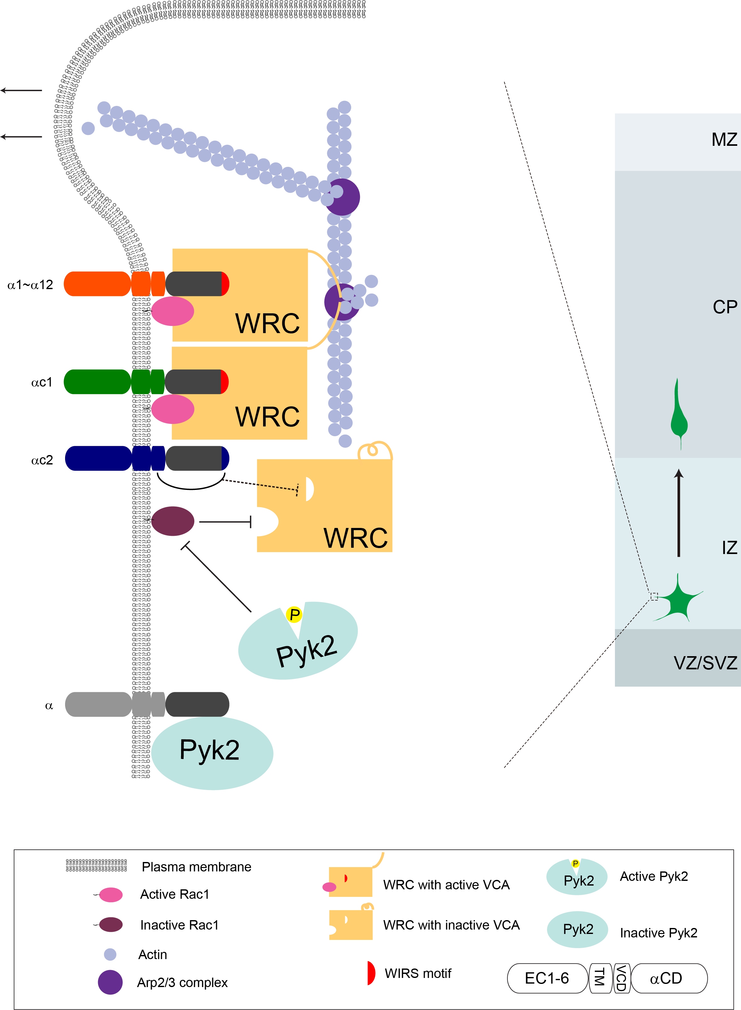 该文首次报道了原钙粘蛋白在神经元迁移过程中的功能,并且阐明了其对肌动蛋白细胞骨架的动态调控机制。具体来说,原钙粘蛋白特异性结合并激活细胞内蛋白复合体,从而调节下游的肌动蛋白细胞骨架的动态架构,最终实现对大脑皮层神经元迁移的调控。同时,原钙粘蛋白还能通过抑制其下游细胞粘连激酶的活性,间接地激活分子开关,使其参与肌动蛋白细胞骨架的动态调控。这些动态调控机制是原钙粘蛋白下游信号通路的全新发现,首次阐明了原钙粘蛋白动态调控肌动蛋白细胞骨架的机制,为原钙粘蛋白家族在中枢神经系统发育过程中的多项重要功能提供了理论基础。