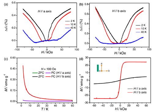 | 图3. Dy-基单分子磁体的磁化曲线和磁介电效应。 |