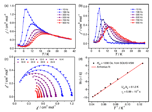 | 图2. Dy-基单分子磁体的交流磁化率。 |