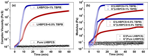 图2 制备的LHBPCS在不同热引发剂(TBPB)含量下交联速率变化