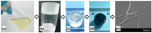 图1 制备的LHBPCS及交联固化与烧结后致密形貌