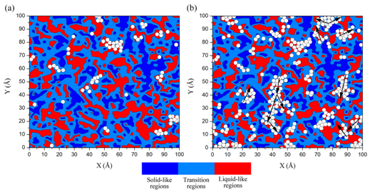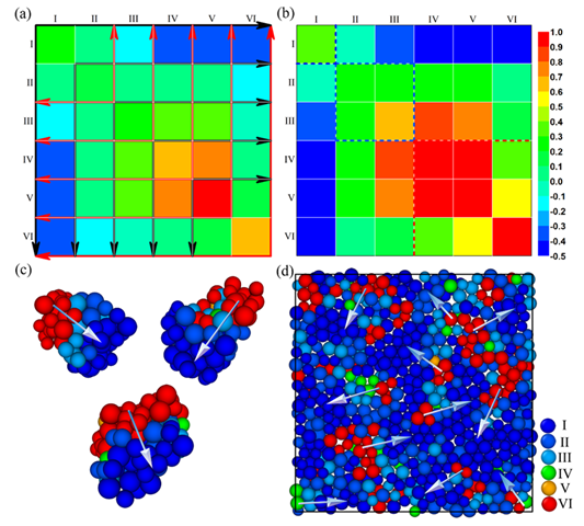 自非晶合金(金属玻璃)发现以来,如何在看似“无序”的原子排布中寻找有序的局域堆垛结构(特别是中程序)成为理解其宏观性能的关键。研究发现,纳米尺度的结构不均匀性是非晶合金的本征特性,合金内存在着大量的软、硬区域,软区已经被证实为非晶合金弛豫和塑性变形的结构起源。然而,由于缺少对非晶合金内部中程序的认知,软区及其周围的原子排布特点尚未有一个明确的定义,相关理论工作充满挑战。该论文以数种不同体系的非晶合金为研究对象,利用大规模分子动力学计算方法,揭示了在非晶合金中的纳米尺度区域都存在着一种梯度原子堆垛结构,并以此提出了非晶合金内部可具体分割成3类不同的区域:类固态区、过渡区、类液态区。这一发现有助于定量的比较不同非晶合金中软区的数量,进而更深入地理解非晶合金变形行为,为人们设计高强韧性的金属玻璃材料提供了重要的理论指导。
