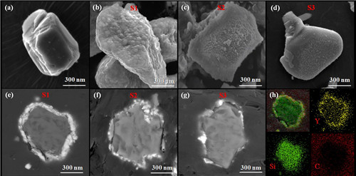 图1 扫描电子显微镜图片和能谱分析显示出Y3Si2C2良好包裹在SiC颗粒表面